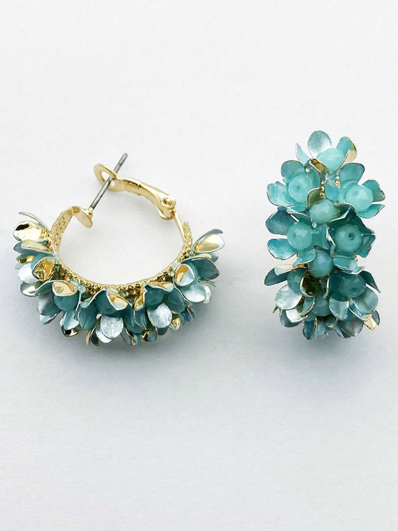 Обеци "Цветчета" в бебешко синьо, тревно зелено, розово или тъмносиньо тип халка Диаметър 3,5 см Материал Zinc Alloy