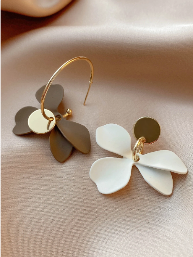 Обеци златисти халки с нежно цвете